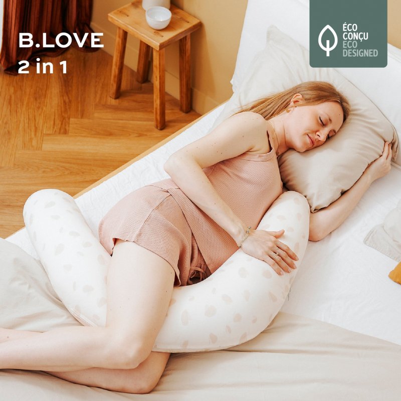Podporný a relaxačný vankúš B.LOVE 2v1 je revolučná patentovaná inovácia pre budúcich rodičov! Tento vankúš z organickej bavlny je mimoriadne mäkký s tichou výplňou z mikroguľôčok a je naozaj pohodlný. Jeho dômyselný, užívateľsky prívetivý systém prestavby znamená, že teraz môžete mať 2 vankúše v 1 pre dokonalú relaxáciu šitú na mieru!