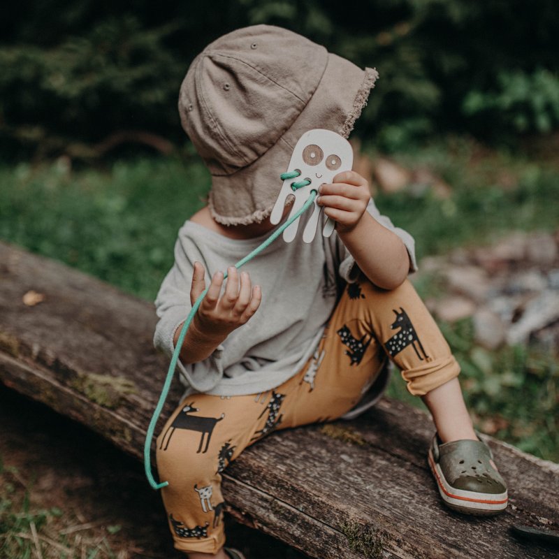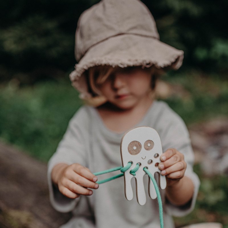 Drevená provliekacia hračka rozvíjajúca kreativitu a predstavivosť. Provliekanie zvieratiek šnúrkami predstavuje nielen radostný spôsob zábavy, ale zároveň napomáha v príprave detí na písanie v škole. Rozvíja manuálnu zručnosť a jemnú motoriku. Tréning koordinácia oko-ruka podporuje jazykové zručnosti a vytváranie nových nervových spojení v mozgu. Na začiatok dobrodružstva s provliekaním odporúčame menšiu verziu, aby ste mohli lepšie posúdiť, v ktorej fáze vývoja jemnej motoriky sa vaše dieťa nachádza, a následne prejsť k väčšej verzii.