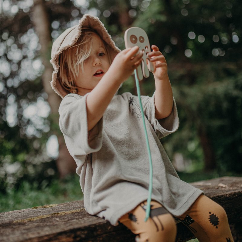 • drevená provliekacia hračka pre rozvoj kreativity, fantázie a jemnej motoriky