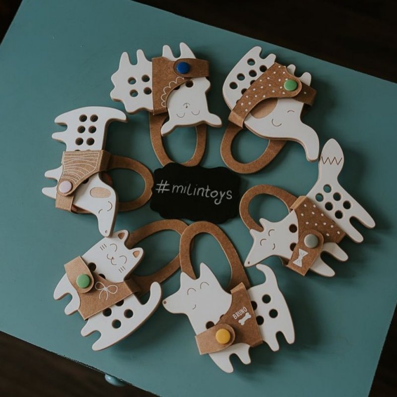 • drevená provliekacia hračka pre rozvoj kreativity, fantázie a jemnej motoriky