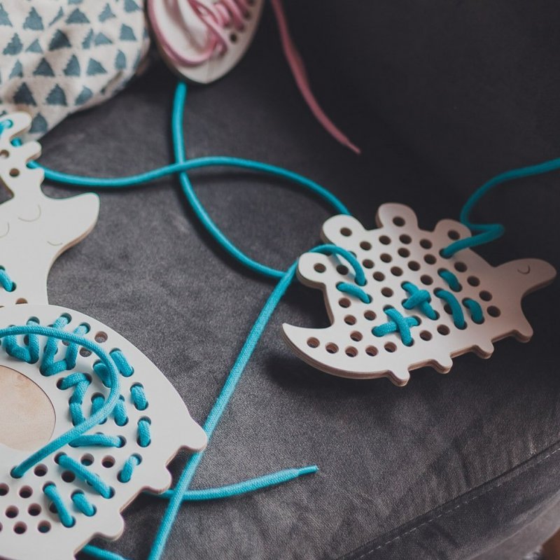 - drevená prevliekacia hračka pre rozvoj kreativity, fantázie a jemnej motoriky