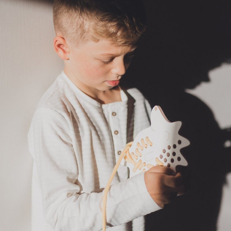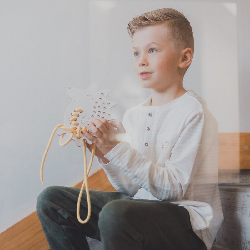- drevená prevliekacia hračka pre rozvoj kreativity, fantázie a jemnej motoriky