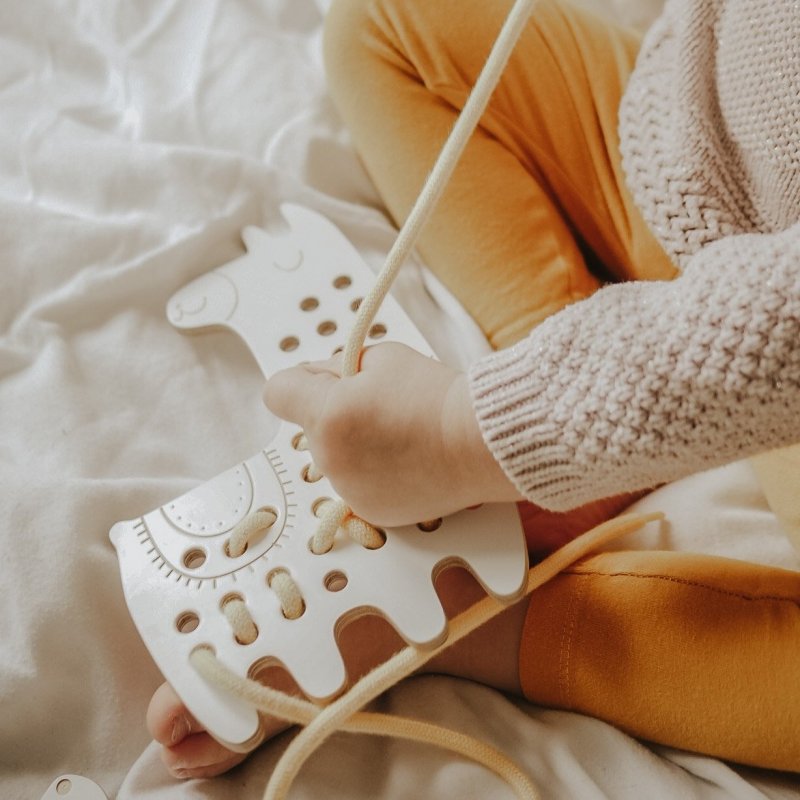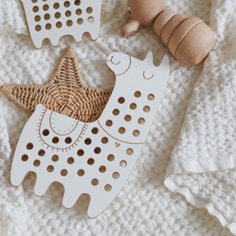 - drevená prevliekacia hračka pre rozvoj kreativity, fantázie a jemnej motoriky