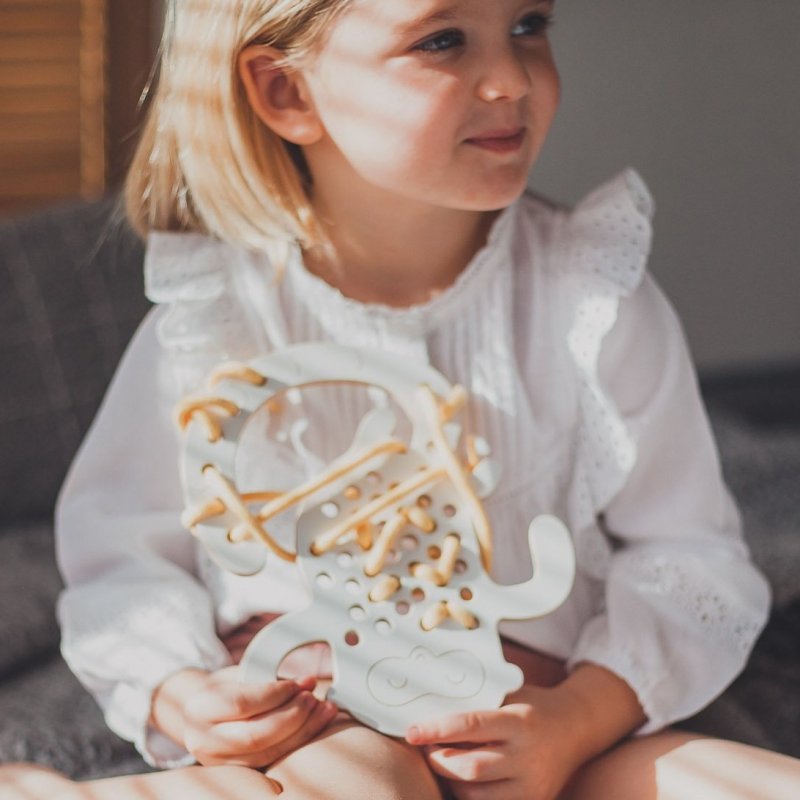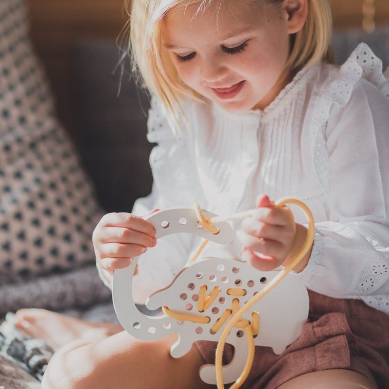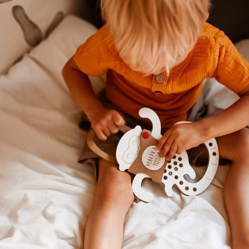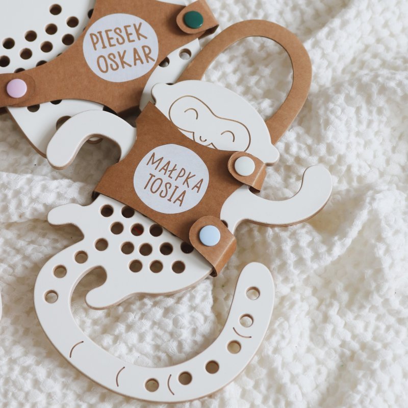 - drevená prevliekacia hračka pre rozvoj kreativity, fantázie a jemnej motoriky