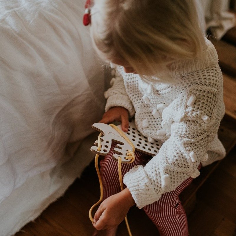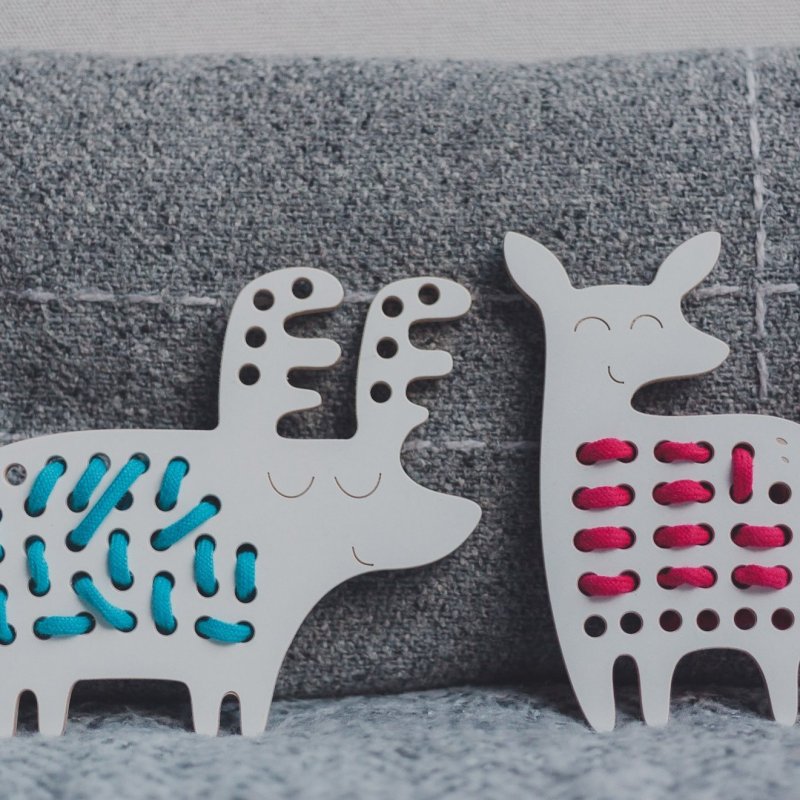 - drevená prevliekacia hračka pre rozvoj kreativity, fantázie a jemnej motoriky