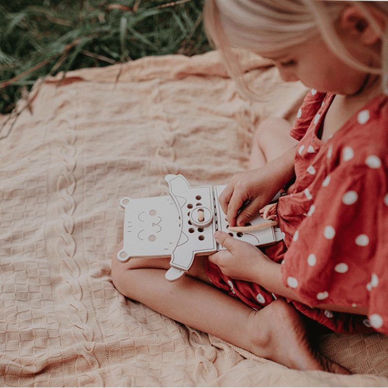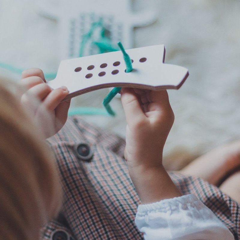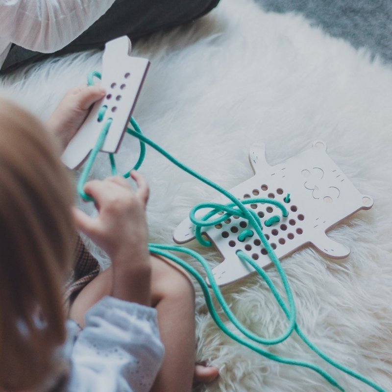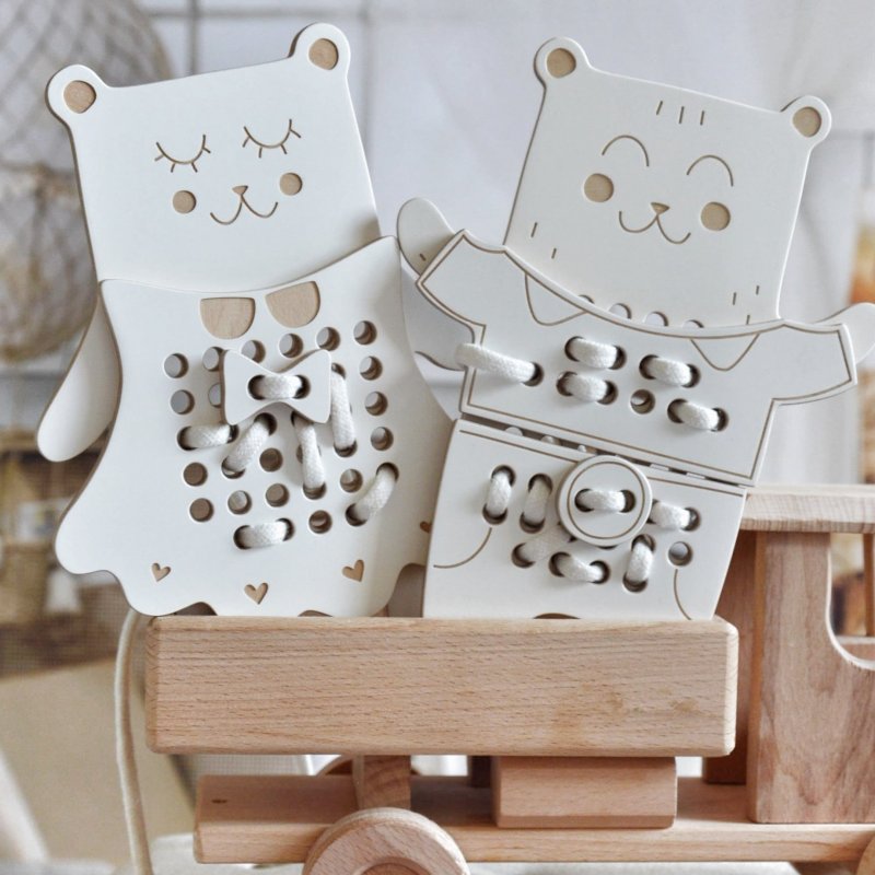- drevená prevliekacia hračka pre rozvoj kreativity, fantázie a jemnej motoriky