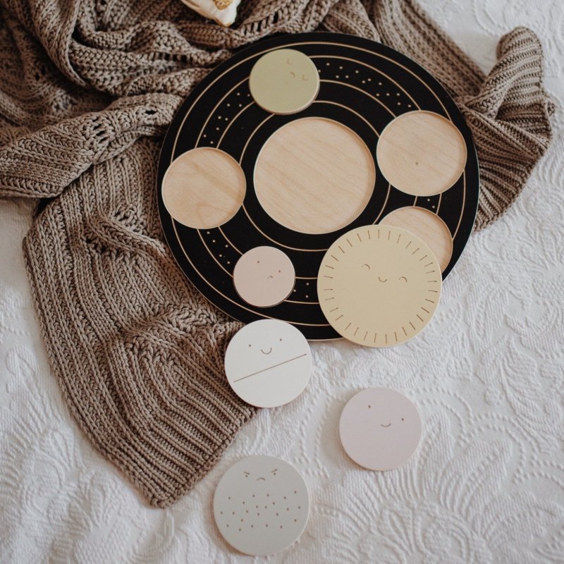 - planétky sú z jednej strany natreté jemnými, pastelovými farbami, s vyrytými tvárikmi, z druhej strany sú biele