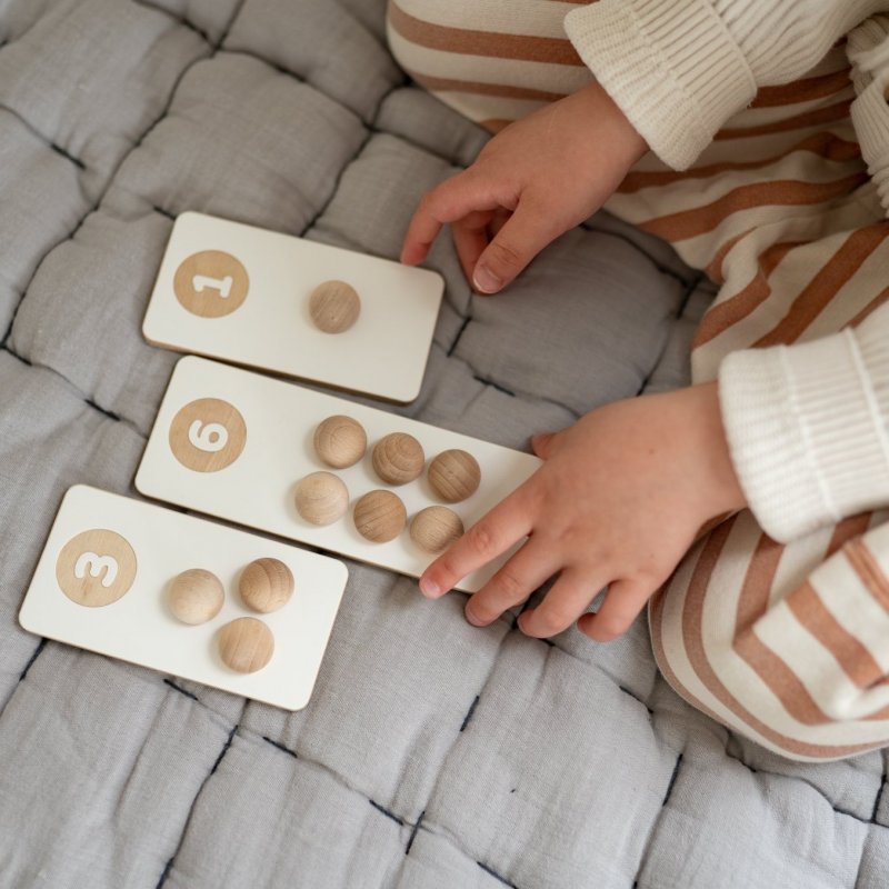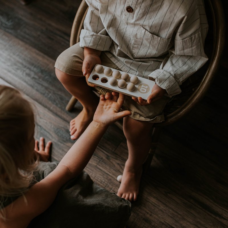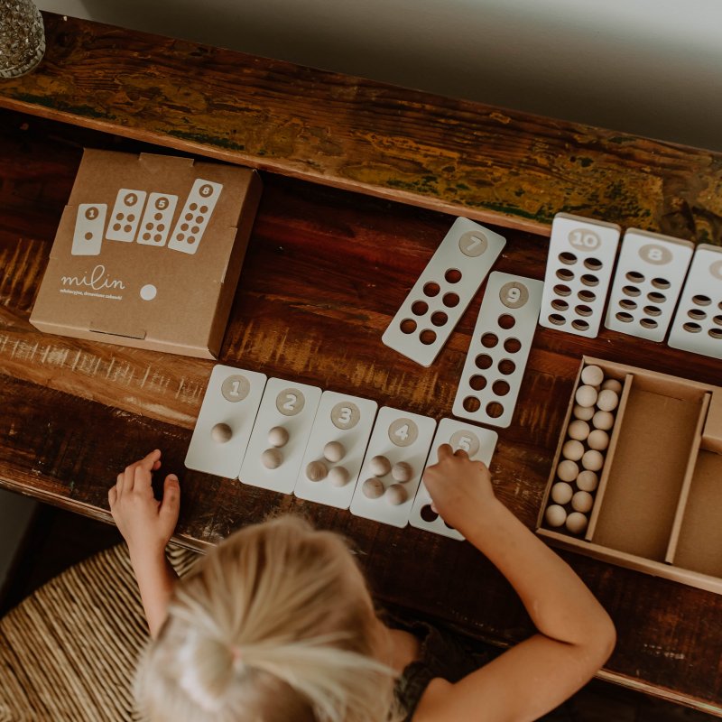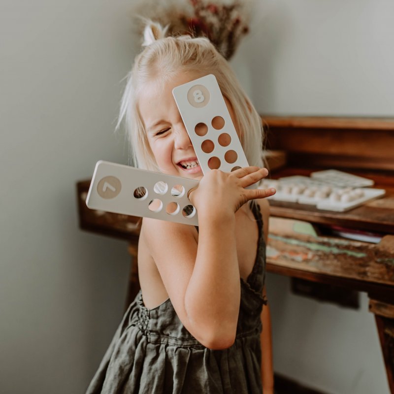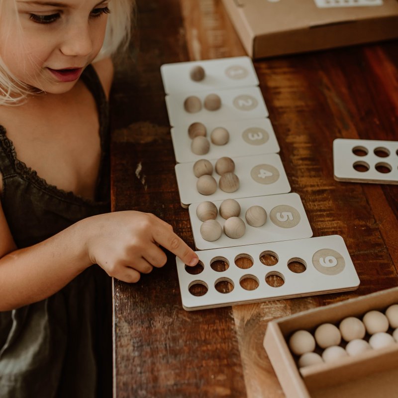 - úlohou je usadiť príslušný počet drevených guličiek do dierok