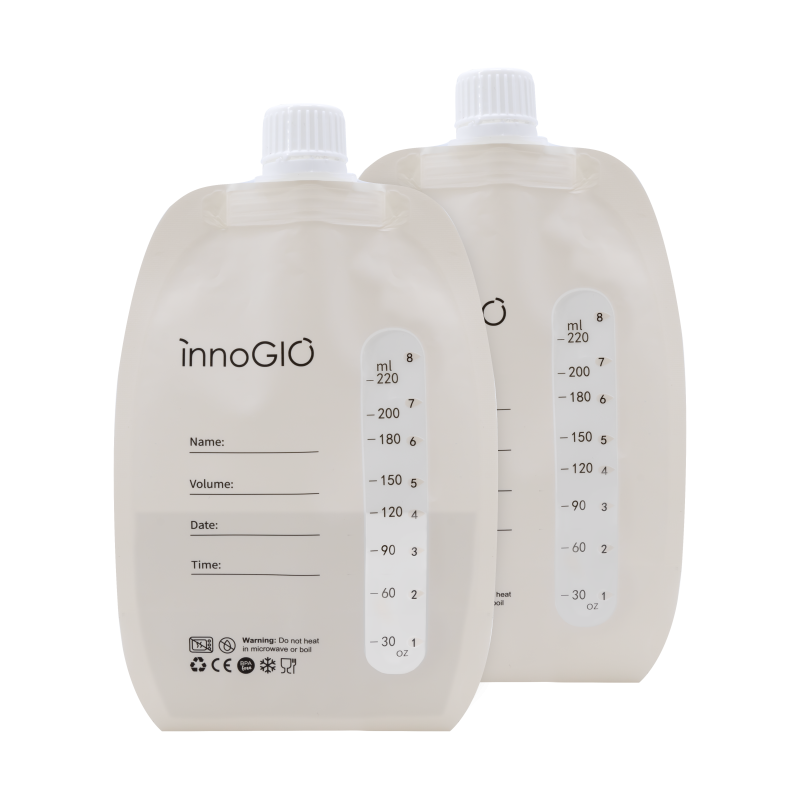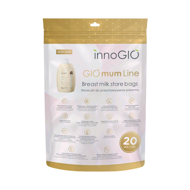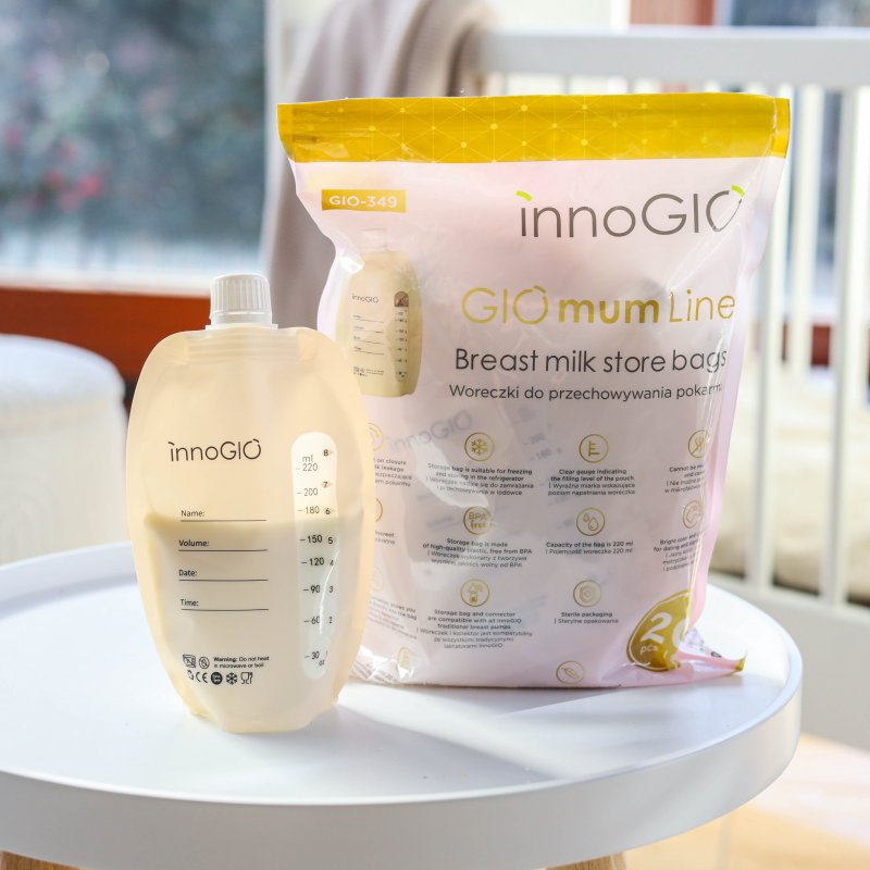 Jednorazové, sterilné vrecká innoGIO sú skvelým spôsobom skladovania materského mlieka. Umožňujú rýchlo a bezpečne uchovať mlieko z odsávačky materského mlieka, aby potom mohlo byť použité presne vtedy, keď to dieťatko potrebuje. Vďaka konektoru, ktorý je súčasťou balenia, je možné materské mlieko odsávať priamo do vrecka a tesný uzáver ho ochráni pred vytečením.