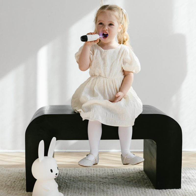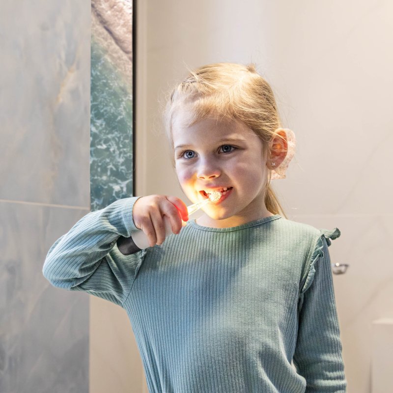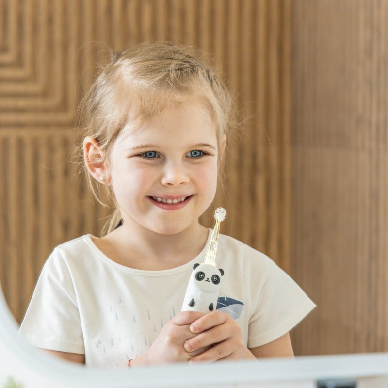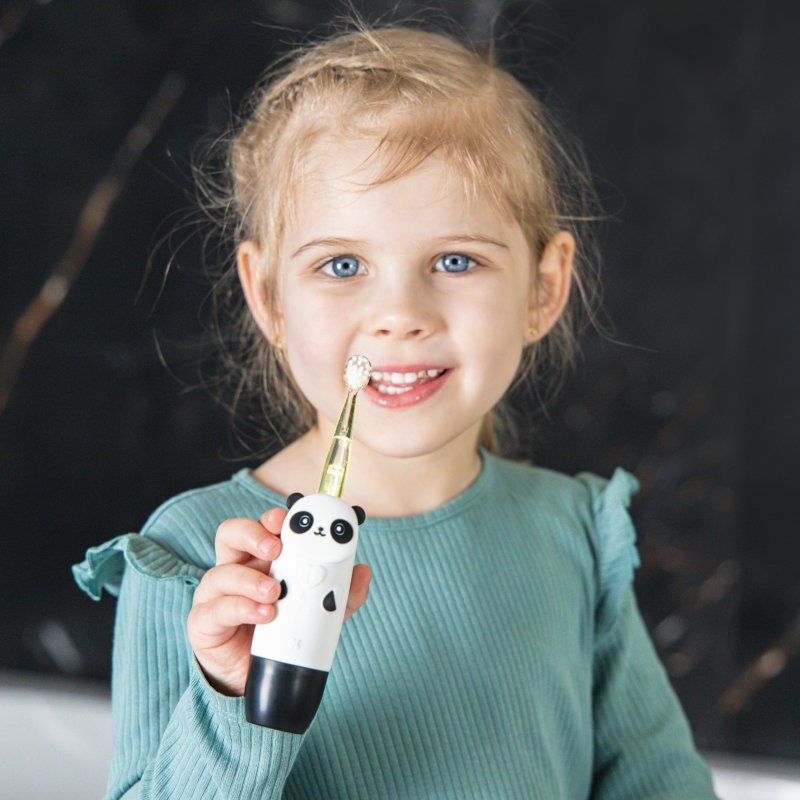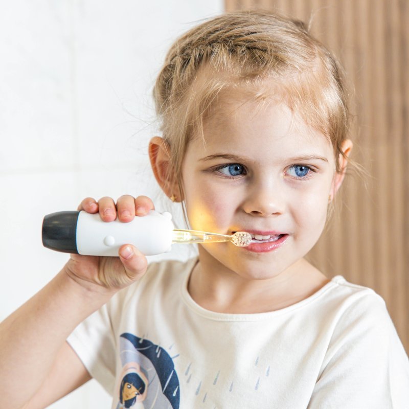 - čistiaca hlava s mäkkými štetinkami je vyrobená z DuPont materiálu, ktorý je pevný a odolný proti opotrebeniu, má zaoblené konca, chráni ďasná dieťaťa a účinne čistí zuby
