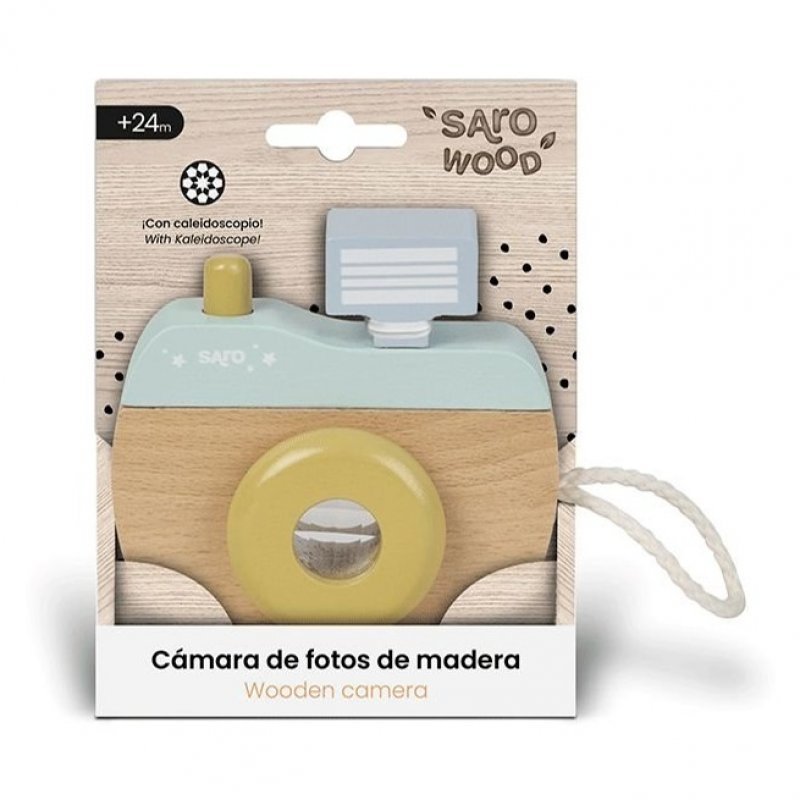 • drevený fotoaparát s otočnou šošovkou a mačkacou spúšťou