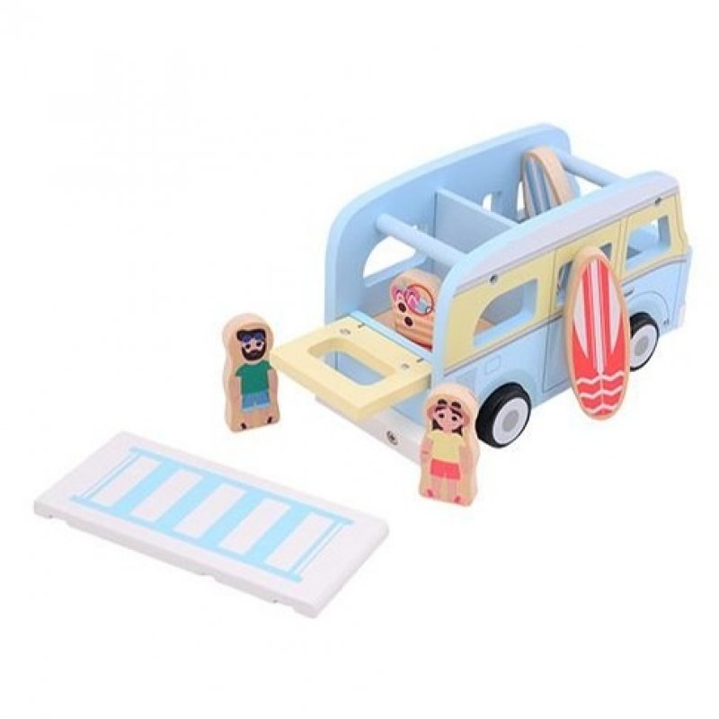 - obsahuje celkom 7 dielov - karavan + strechu + 2 figúrky + 2 surfovacie dosky + plážovú tašku