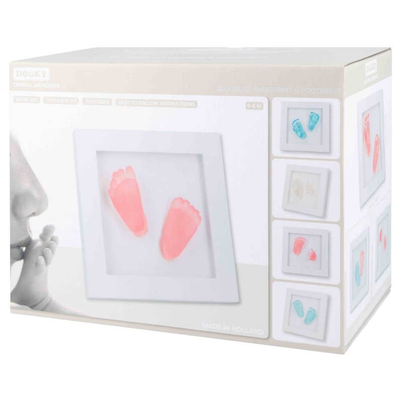 Doprajte svojim najkrajším spomienkam krásnu podobu s rámčekom Crystal Memories 3D Frame Handprint & Footprint! Pomocou bezpečných a užívateľsky príjemných materiálov – alginátu, silikónu a sadry – môžete ľahko vytvoriť formu na vytvorenie ručičky alebo nožičky. Po jej naplnení čírym epoxidom vznikne dych vyrážajúce umelecké dielo s krištáľovým vzhľadom. Potom nalejete do rámu vrstvu krištáľovo čistého epoxidu a opatrne umiestnite vytvorené 3D odtlačky. Crystal Memories 3D Frame Handprint & Footprint vám umožní pridať k tejto špeciálnej pamiatke váš osobný štýl. Výsledkom je dych vyrážajúce umelecké dielo, ktoré si môžete prispôsobiť trblietkami, korálkami, menom dieťaťa alebo inými dekoráciami podľa vášho výberu (nie sú súčasťou balenia).