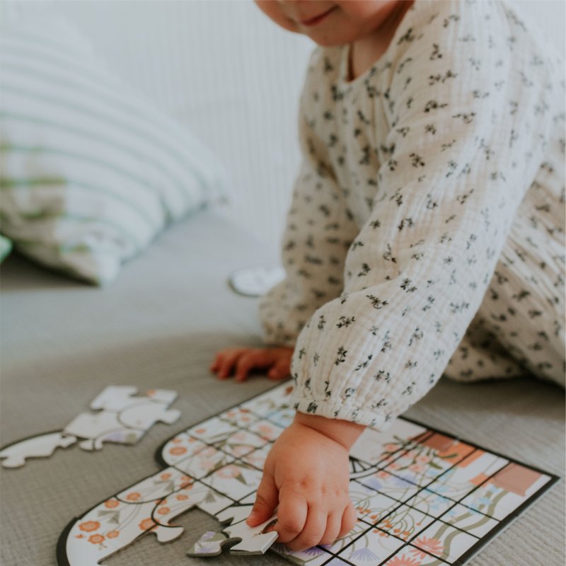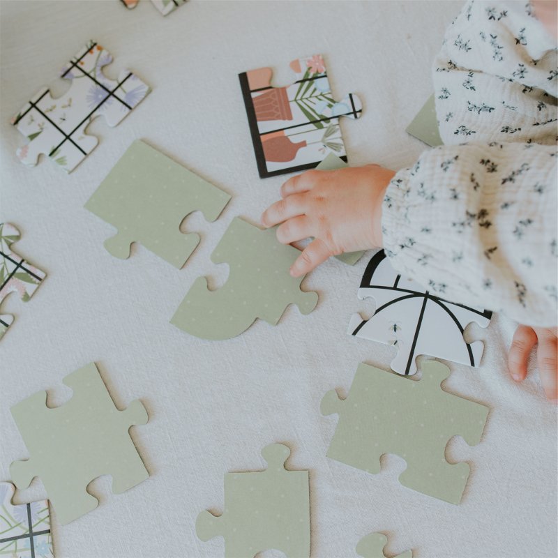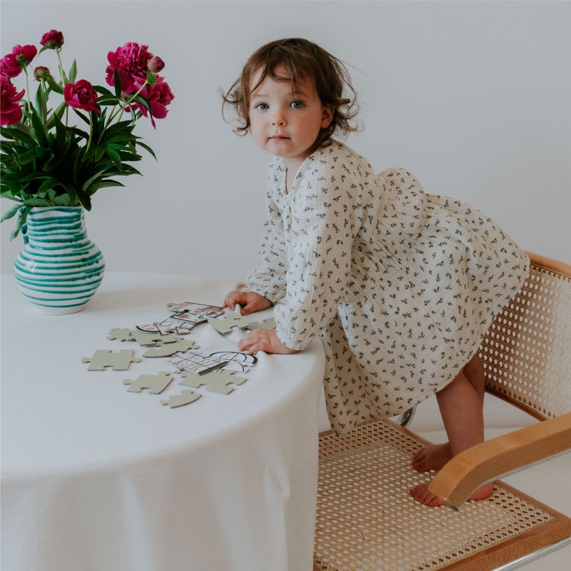 - detské puzzle s originálnou ilustráciou na jednej strane, na rube má pôvabné bodky