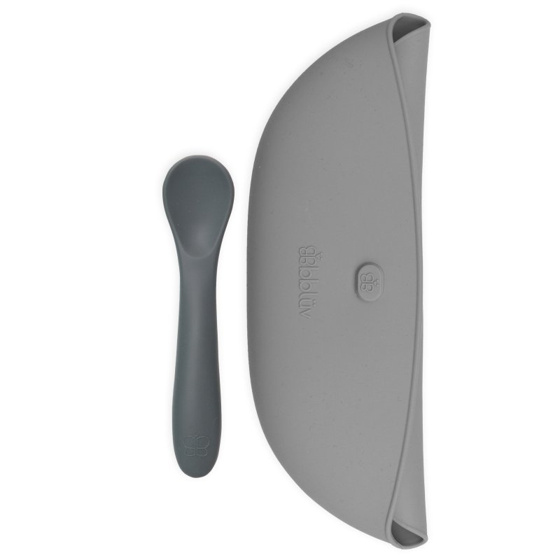 - veľmi kompaktný - podbradník je možné spolu s lyžičkou zrolovať, uložiť do vrecka a zaistiť pomocou gombíku