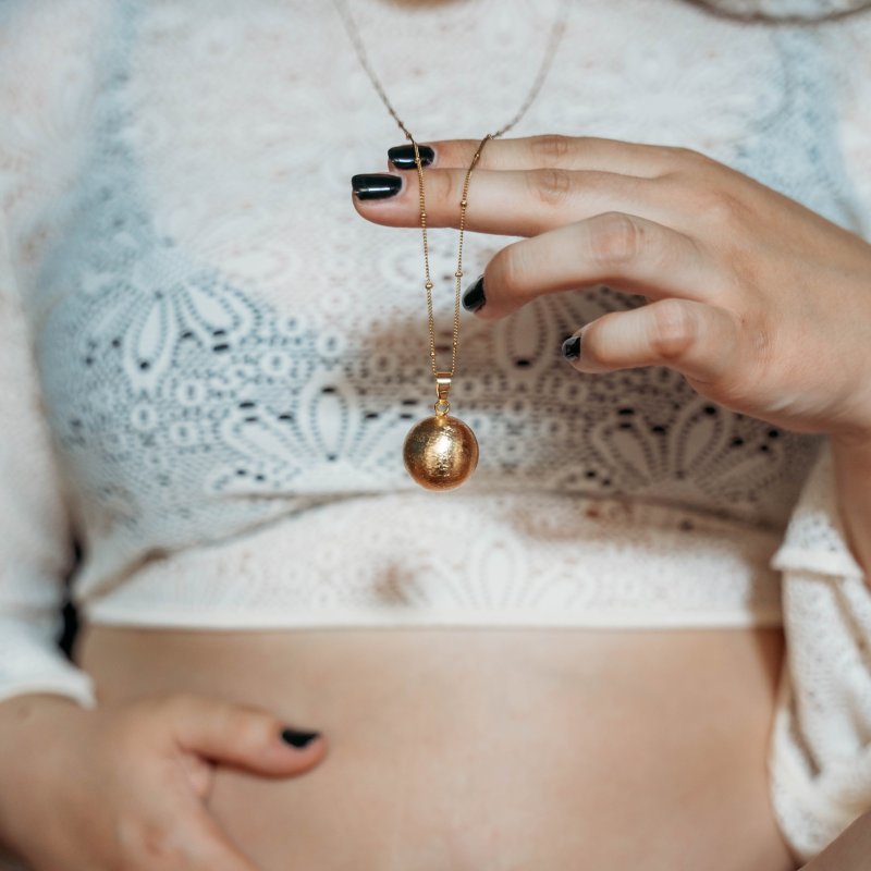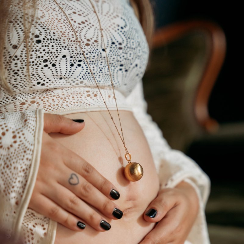 - nosia sa na dlhšej retiazke/šnúrke tak, aby sa prívesok pohyboval na brušku tehotnej ženy