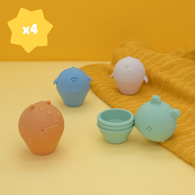 - sada 4 silikónových hračiek s roztomilými tváričkami zvieratiek