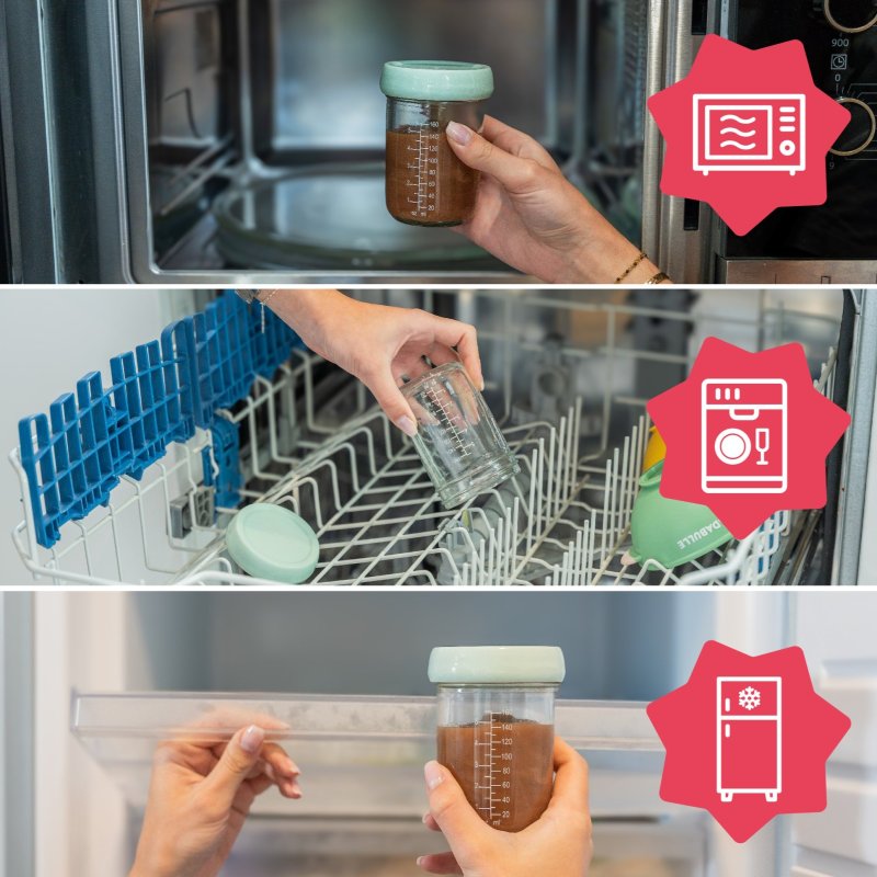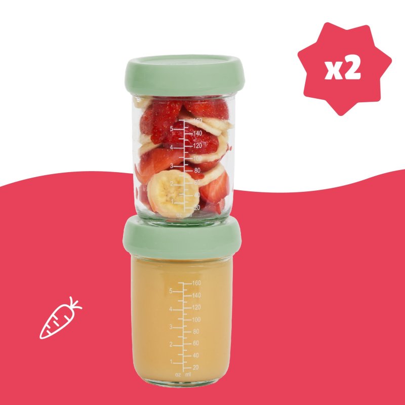 - sklenené misky pre zdravé skladovanie detskej stravy
