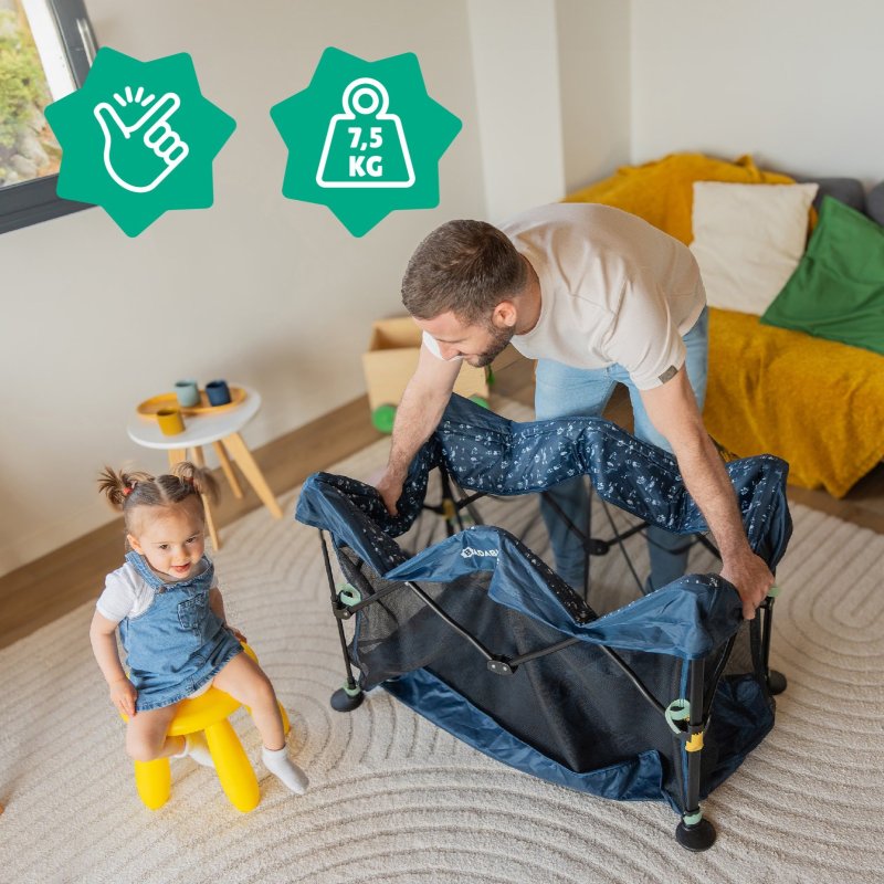- cestovná postieľka s unikátnym, veľmi jednoduchým systémom skladania a rozkladania