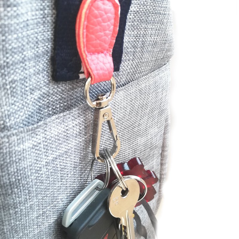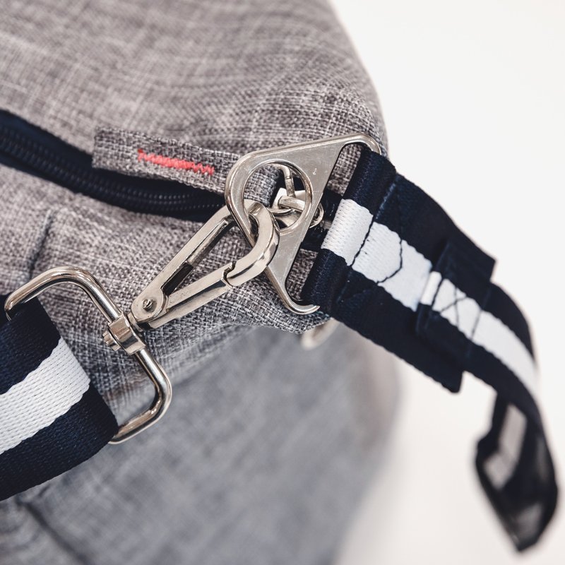- zvonku 2 vrecká so zipsovým uzáverom a 2 bočné vrecká s karabínkami napr. na kľúče