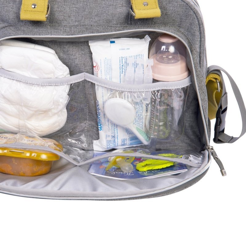 - funkčná taška s mnohými priehradkami a praktickými doplnkami pre rodičov na cestách