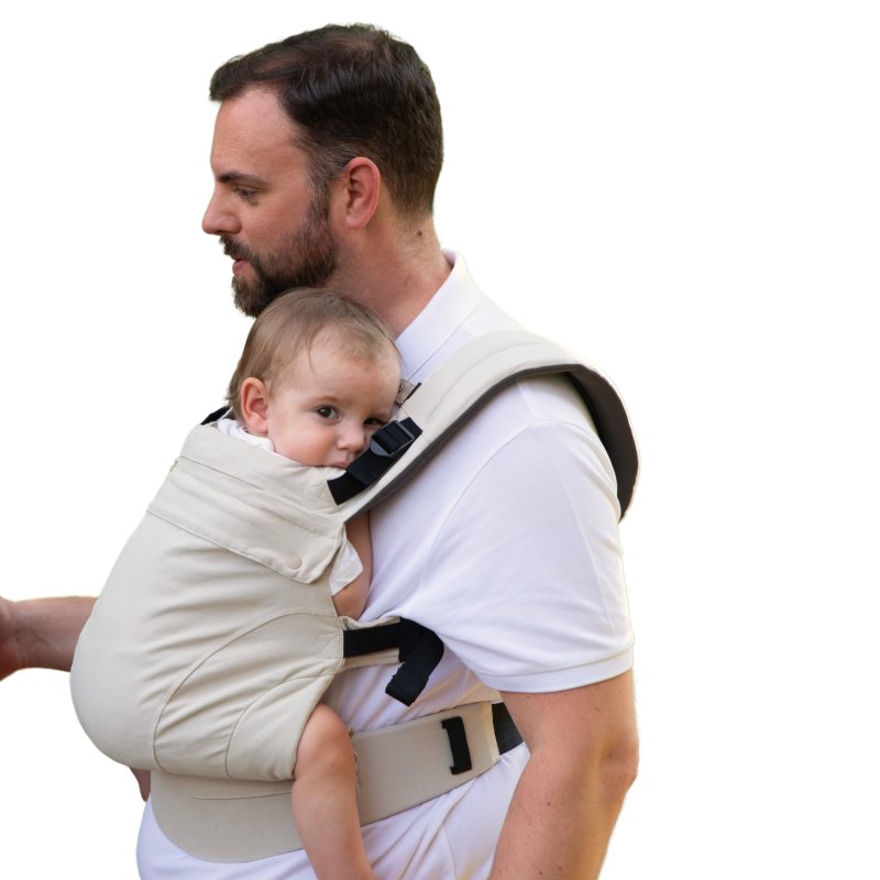 • umožňuje bábätku sedenie v správnej ergonomickej M-polohe - s doširoka roztiahnutými nožičkami a kolenami nad úrovňou zadočku