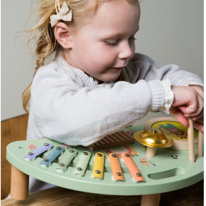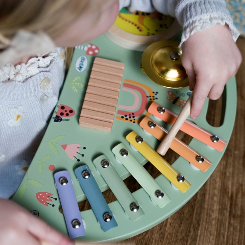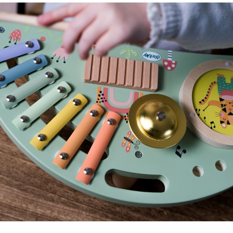 - drevená hudobná stanica so základňou obsahujúcou hudobné nástroje (xylofón, zvonček, bubienok)