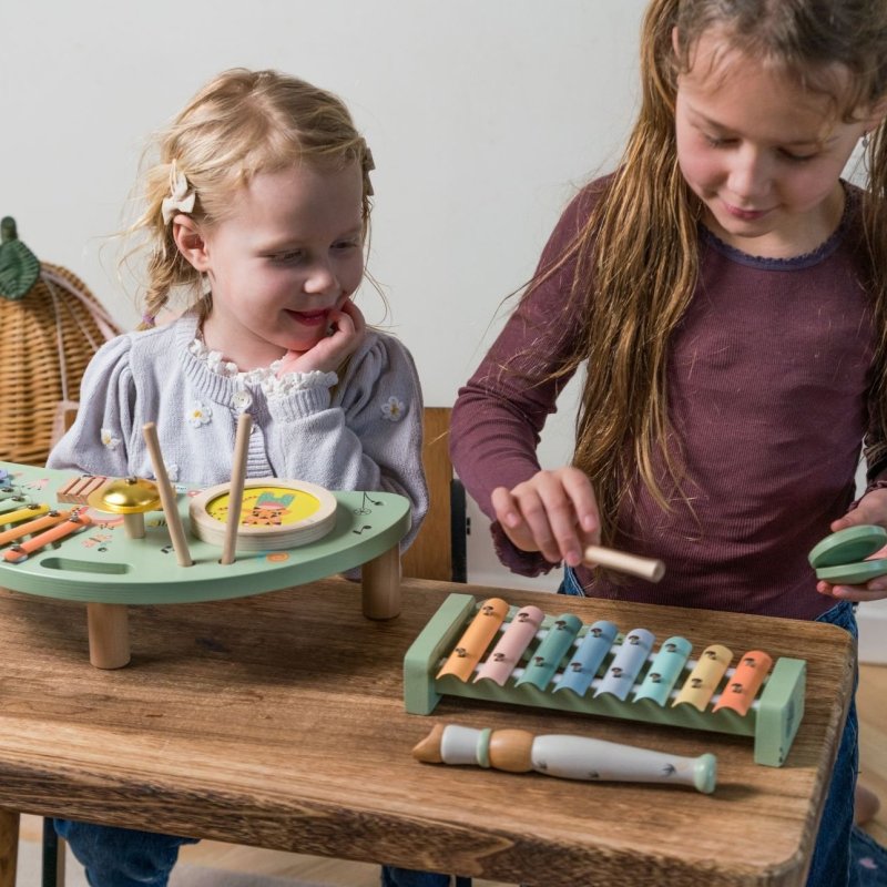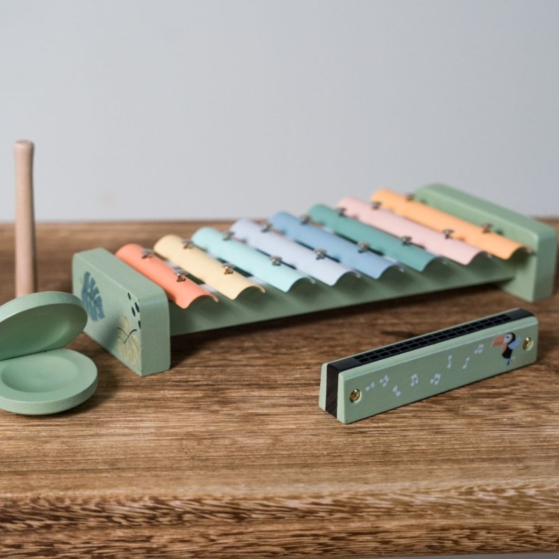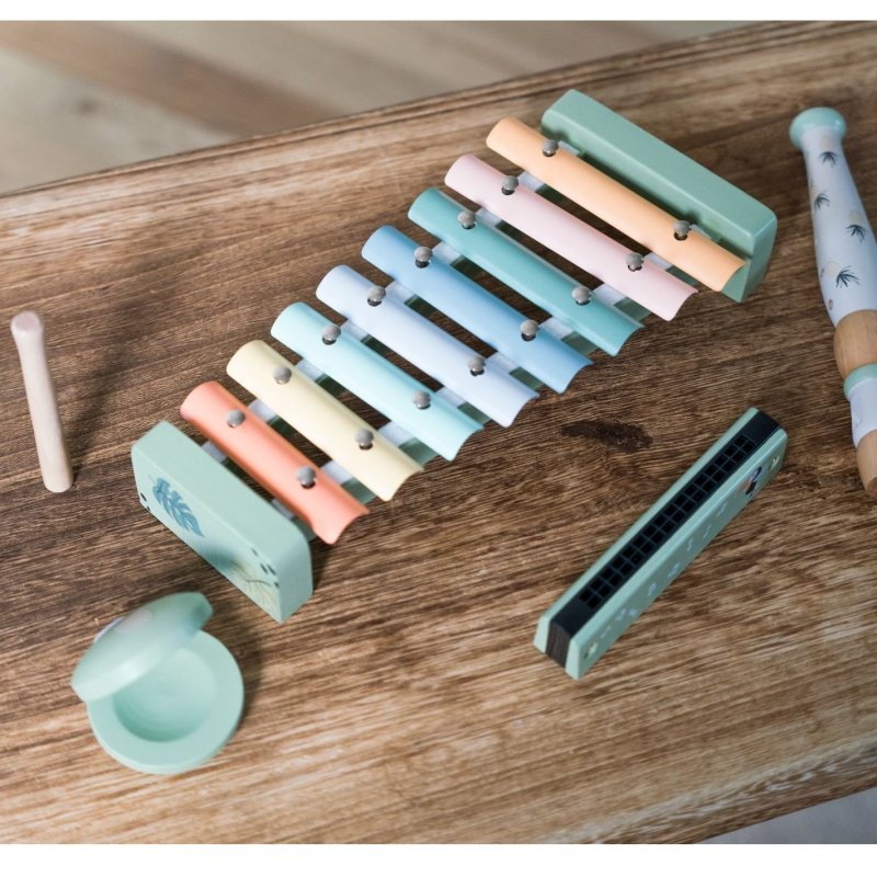 - multifunkčná hudobná sada z dreva v jemných farbách