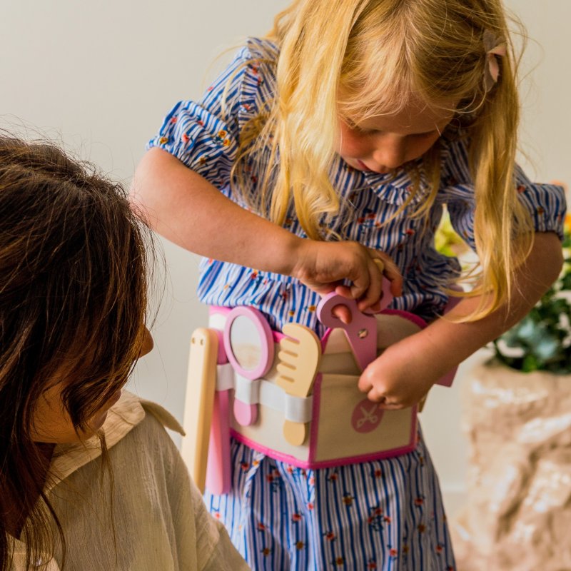 - drevená sada pre hru na kaderníka so všetkým v jednom balení