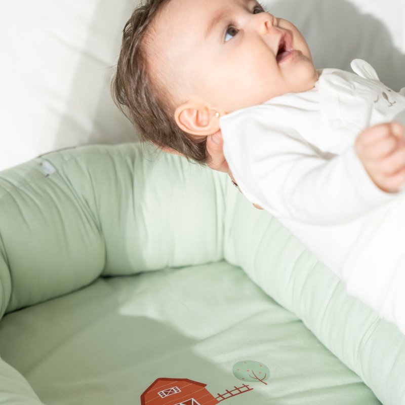 Hniezdo pre bábätko je navrhnuté tak, aby poskytovalo maximálne teplo, pohodlie a pocit bezpečia podobný pocitu v mamičkinom brušku. Slúži ako bezpečné miesto na odpočinok pre bábätko, na spánok aj na iné použitie (napr. ako prebaľovacia podložka alebo podložka do postieľky). Vďaka svojmu nadčasovému a minimalistickému dizajnu krásne zapadne do každej modernej domácnosti.