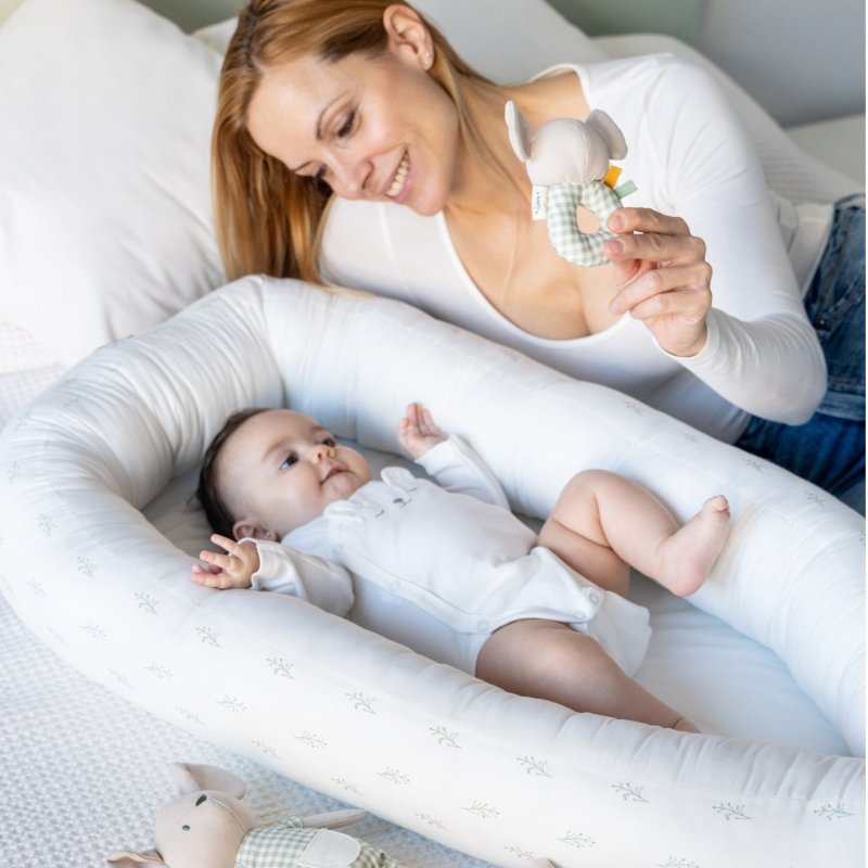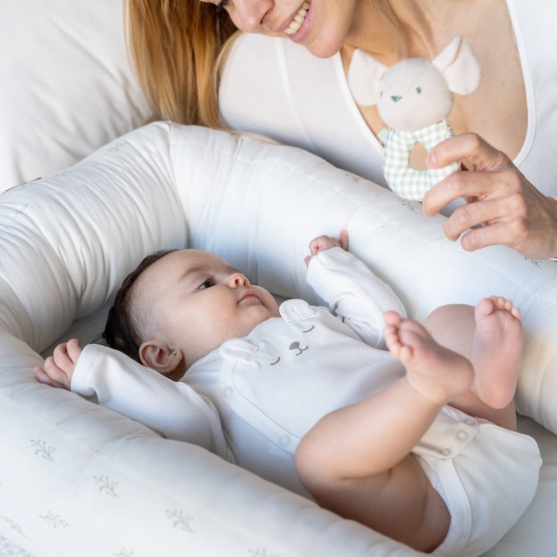 Hniezdo pre bábätko je navrhnuté tak, aby poskytovalo maximálne teplo, pohodlie a pocit bezpečia podobný pocitu v mamičkinom brušku. Slúži ako bezpečné miesto na odpočinok pre bábätko, na spánok aj na iné použitie (napr. ako prebaľovacia podložka alebo podložka do postieľky). Vďaka svojmu nadčasovému a minimalistickému dizajnu krásne zapadne do každej modernej domácnosti.