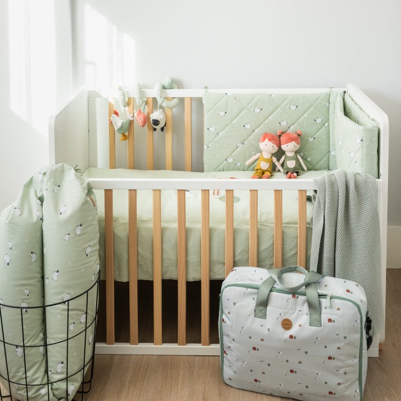 Táto súprava je vkusným doplnkom, ktorý premení každú postieľku na útulné a bezpečné miesto. Obsahuje mäkkú podložku na matrac, ktorá poskytuje maximálne pohodlie a udržuje dieťa v príjemnom teple, a ochranný mantinel, ktorý spoľahlivo zabraňuje nárazom o boky postieľky. Dá sa ľahko pripevniť pomocou praktických šnúrok a bez problémov ho možno prispôsobiť akémukoľvek typu postieľky. Jemný, elegantný dizajn v neutrálnych farbách dodáva detskej izbe harmóniu a pokojnú atmosféru. Ideálna voľba pre rodičov, ktorí hľadajú kombináciu funkčnosti, pohodlia a estetickej dokonalosti v jednom premyslenom výrobku.