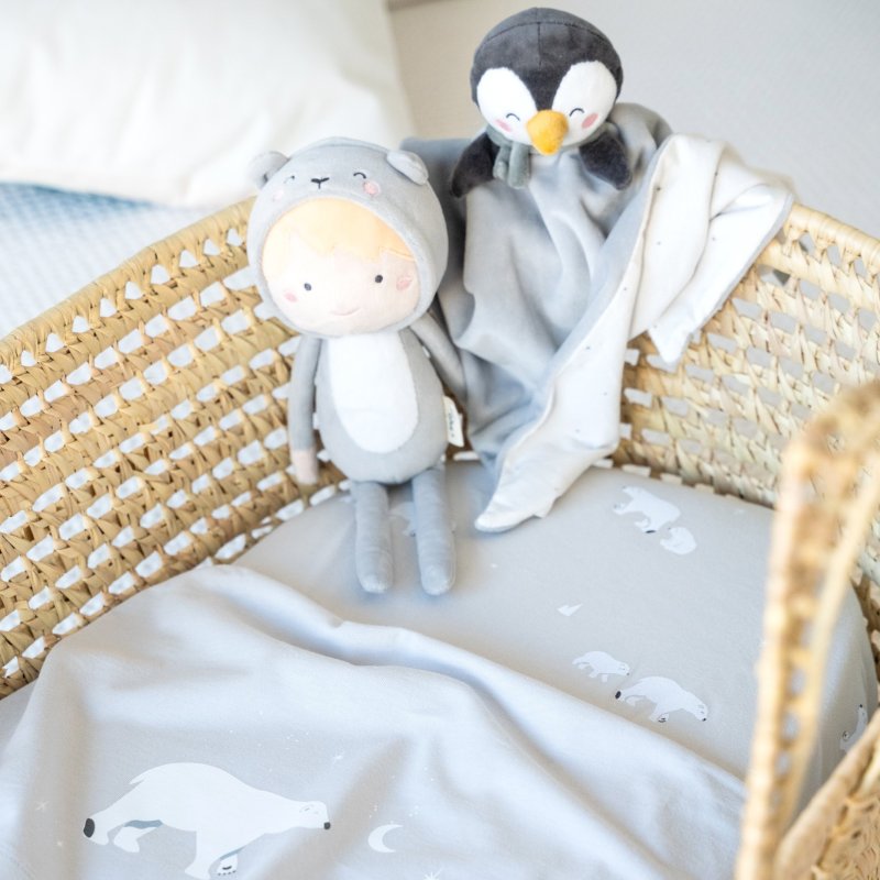 Táto súprava prestieradiel do kolísky je navrhnutá tak, aby zabezpečila maximálne pohodlie a bezpečnosť vášho dieťaťa počas spánku. Vďaka kvalitnému materiálu poskytuje príjemné prostredie na spanie počas celého roka - v lete príjemne chladí a v chladnejších mesiacoch hreje. Súprava obsahuje: obliečku na vankúš, prestieradlo s gumičkou, ľahkú jednovrstvovú prikrývku.