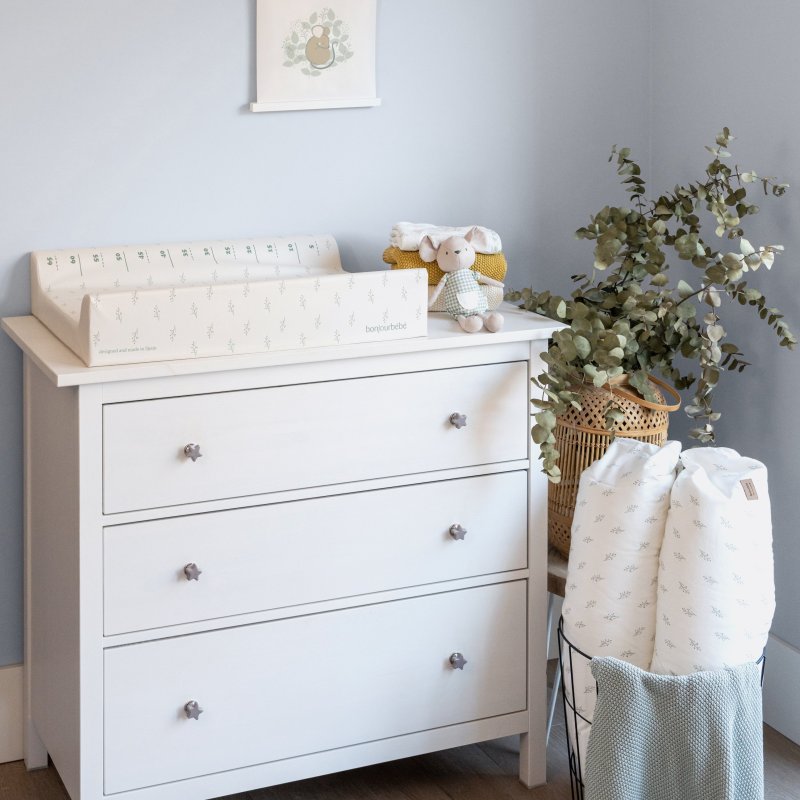 Praktická prebaľovacia podložka s umývateľným PVC povrchom je ideálnou voľbou na každodennú starostlivosť o dieťa. Mäkká pena vo vnútri zaručuje pohodlie pri prebaľovaní, zatiaľ čo vyvýšené boky prispievajú k väčšej bezpečnosti. Na bočnej strane sa nachádza praktická meracia stupnica, ktorá vám umožní sledovať rast vášho dieťaťa priamo počas prebaľovania. Vďaka univerzálnej veľkosti sa skvele hodí na väčšinu komôd a prebaľovacích stolov. Moderný a hravý dizajn rozžiari každú detskú izbu a uľahčí každodennú rutinu.