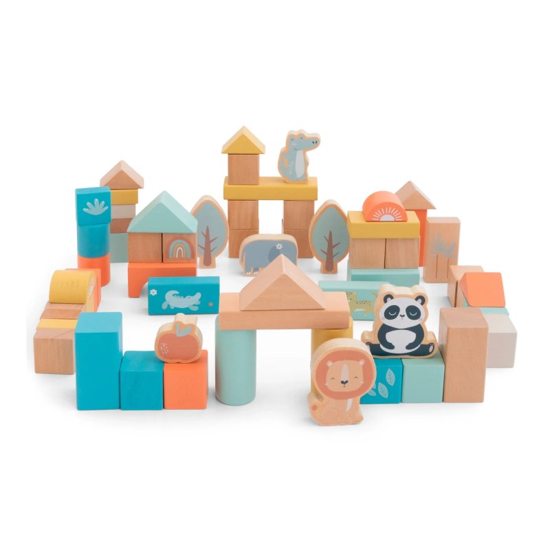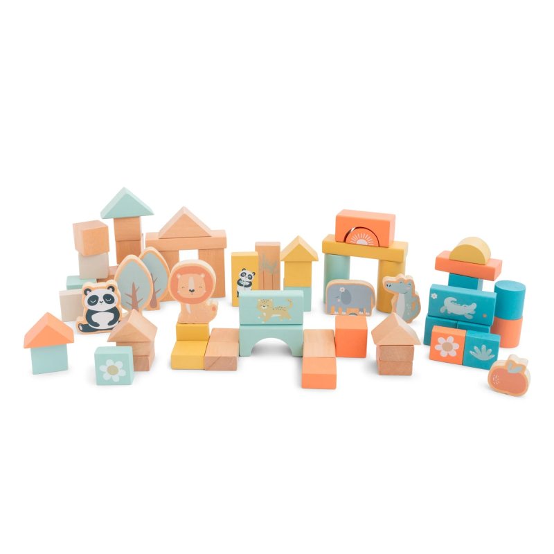 - drevené kocky v rôznych geometrických tvaroch a podobe zvieratiek