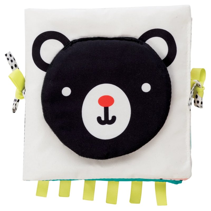 - látková knižka s kontrastnou grafikou rozvíjajúcou zmysly dieťatka, jemnú motoriku a kognitívne schopnosti