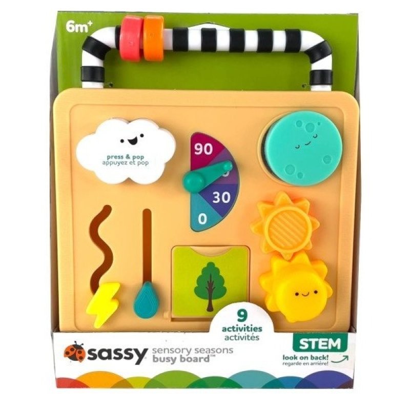 Táto krásna tabuľa s ročnými obdobiami rozvíja zmyslové vnímanie a z vášho bábätka tak môže vzniknúť malý meteorológ! Vyskúšajte 9 zábavných spôsobov, ako sa s touto tabuľou hrať. Hračka stimuluje jemnú motoriku, rozvíja fantáziu a podporuje celkový detský rozvoj. Je ideálny nielen na hranie doma, ale napr. aj počas dlhých ciest autom.