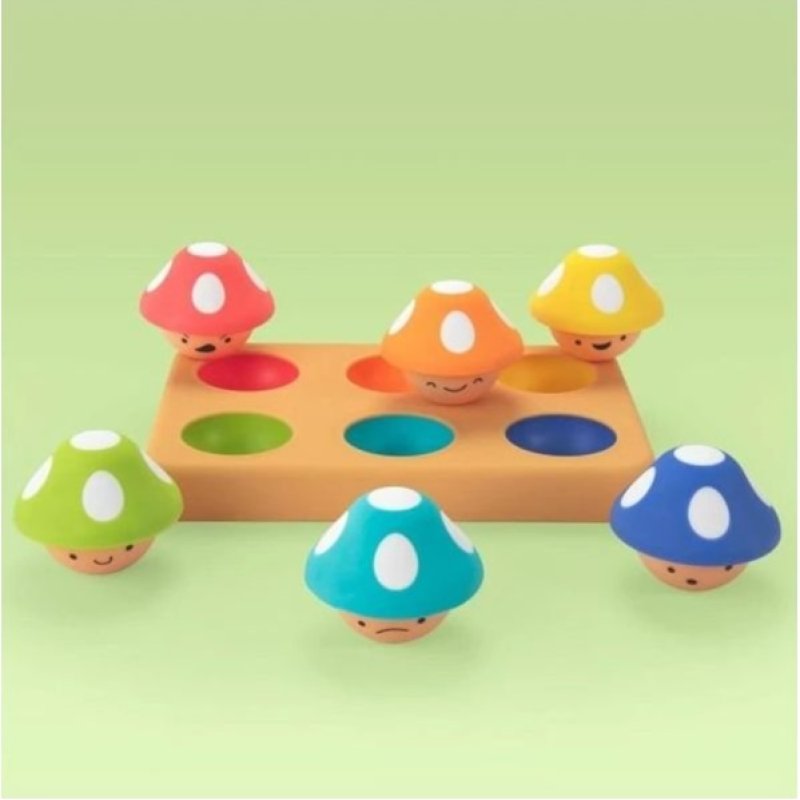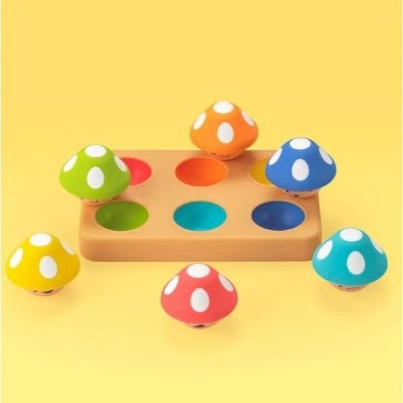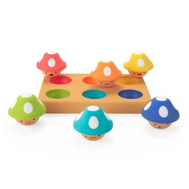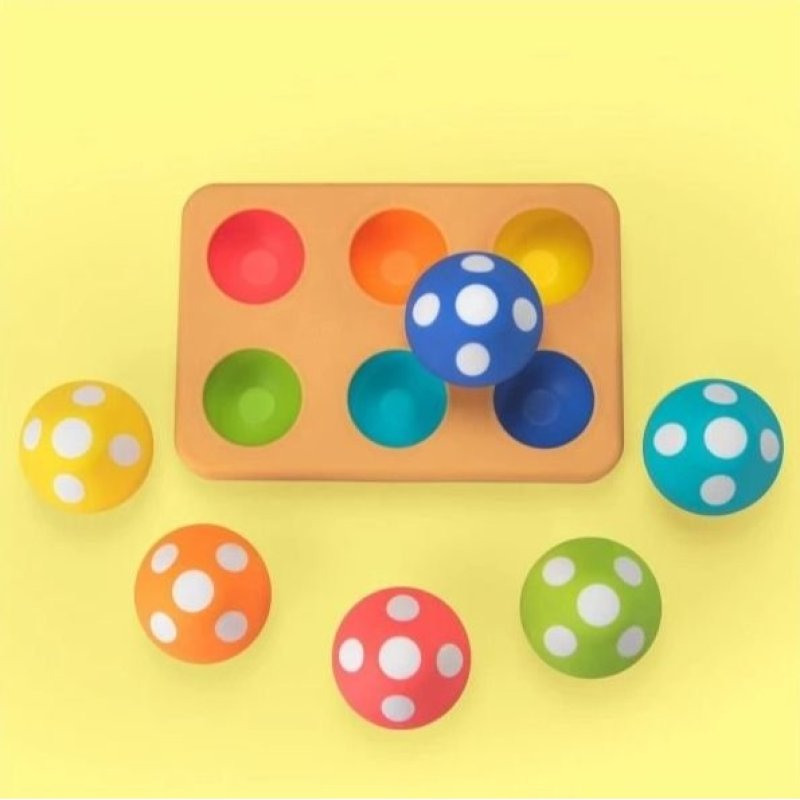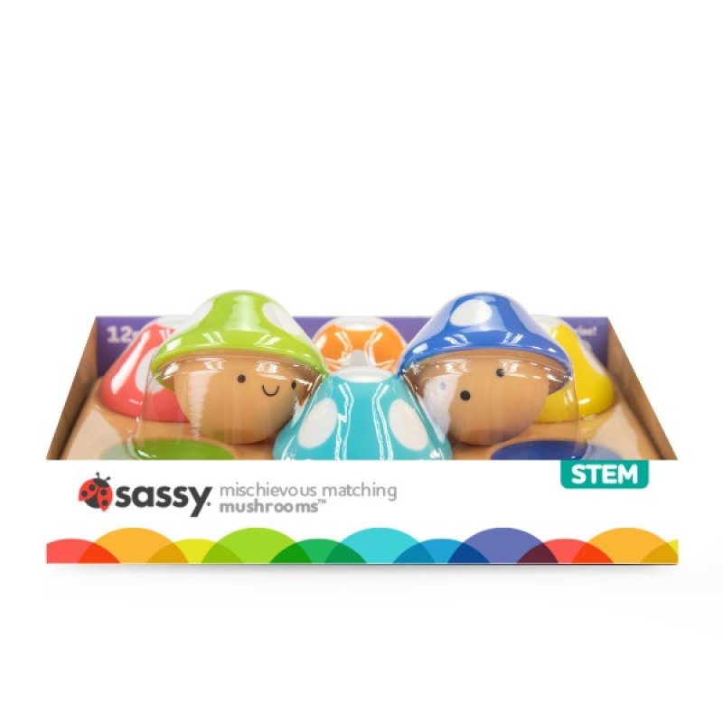 v 12+ mesiacoch môžu dospelí pomôcť dieťaťu učiť sa farby tým, že povedia názov farby hubky a potom ukážu na zodpovedajúcu farbu na podložke, aby dieťa hubku umiestnilo. Veľké HURÁ za škárovanie všetkých 6 hubiek!