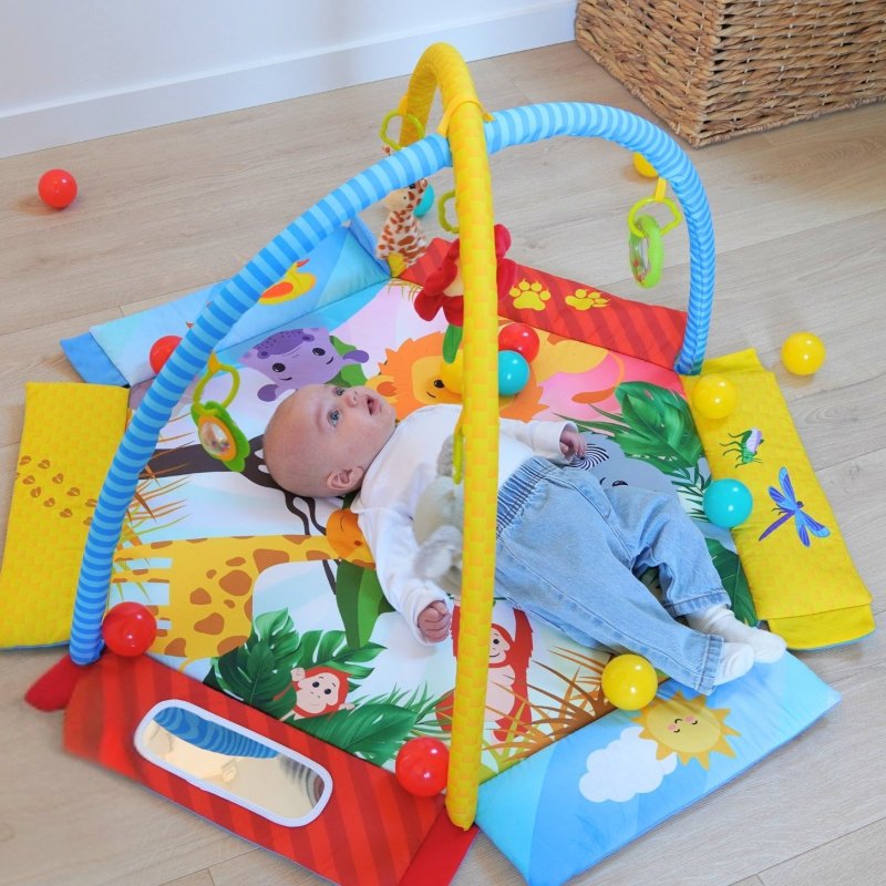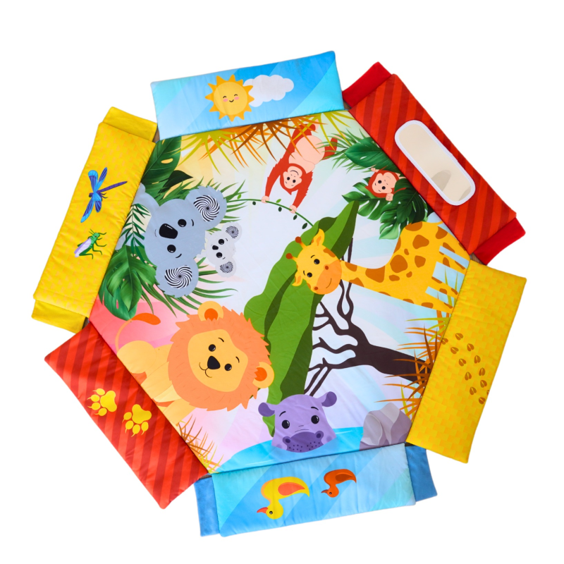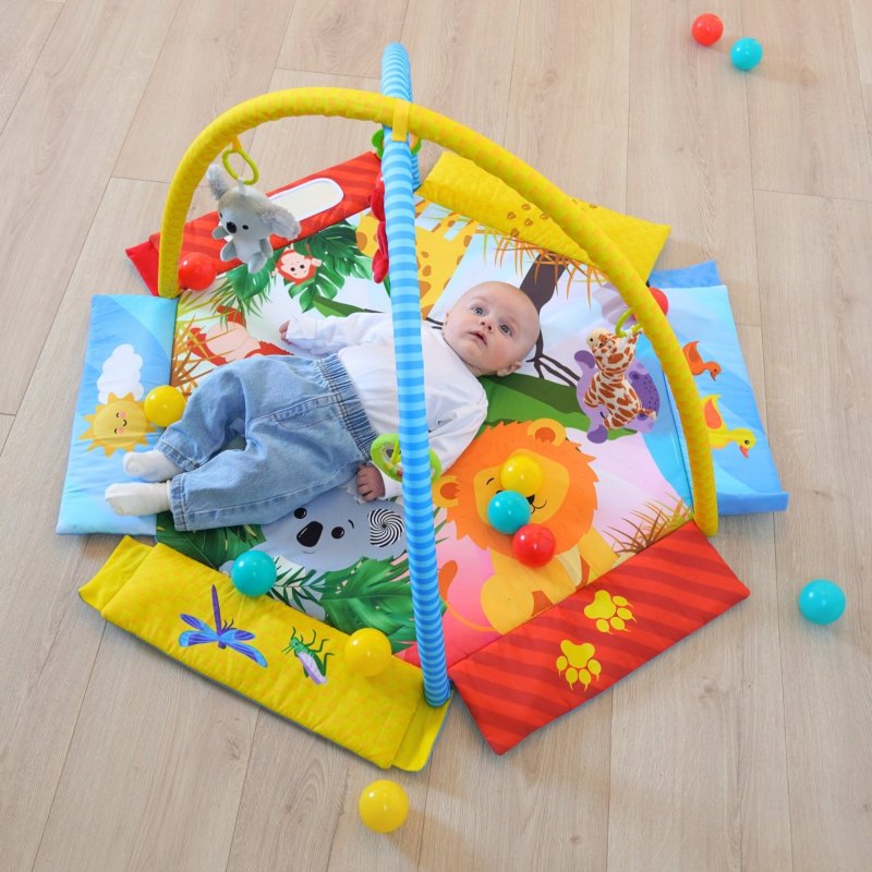 Hracia deka Palenquo je viac než len podložka, na ktorej sa dieťatko môže pohodlne av bezpečí pohybovať - za pár okamihov sa premení na bazénik s guličkami plný radosti a smiechu! S dekou Palenquo sa dieťatko zoznámi s roztomilými zvieratkami, ktoré stimulujú jeho zmysly a pomáhajú mu rozvíjať motorické a vizuálne schopnosti.