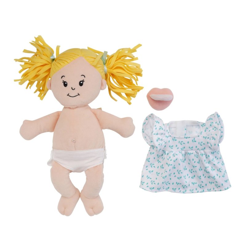 Bábiku možno prať v práčke (jemný program, vlažná voda). Cumlík perte iba ručne. Sušte na vzduchu. Nebielte. Pred sušením jemne prsty prečešte vlasy. Pokiaľ sa počas prania výplň posunie, jemne ju vmasírujte do pôvodného tvaru.