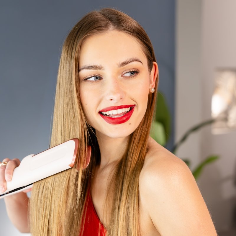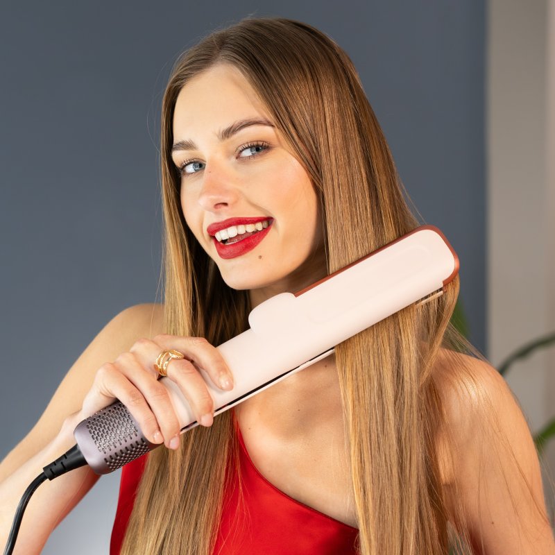 Zoznámte sa s naším najnovším stylingovým zázrakom 2v1 – fénom a žehličkou na vlasy, ktorý vám prináša profesionálne výsledky priamo u vás doma a zároveň sa stará o zdravie a lesk vašich vlasov. Vďaka trom inteligentným režimom – mokrému narovnaniu, suchému osvieženiu a chladivému finišu – máte možnosť upraviť vlasy podľa svojej nálady kedykoľvek a úplne podľa seba. Päť variabilných teplôt, dve rýchlosti prúdenia vzduchu a unikátny režim Precision Boost vám poskytujú absolútnu kontrolu nad stylingom. Prístroj posilňuje štruktúru vlasov, znižuje ich lámavosť a zadržiavaním vlhkosti prispieva k ich žiarivému lesku, zároveň chráni farbené vlasy pred vyblednutím. Objavte nové možnosti krásnych, zdravých a silných vlasov!