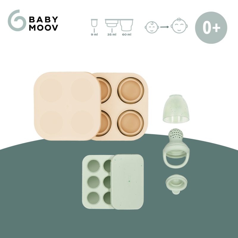- sada silikónových dávkovačov na skladovanie domácich pokrmov a silikónového cumlíka na kŕmenie