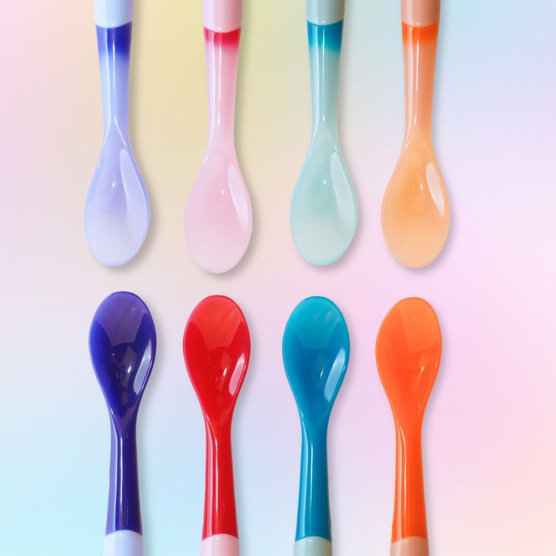 - farebné termolyžičky, ktoré zmenia farbu, ak je pokrm príliš horúci (nad 37°C)
