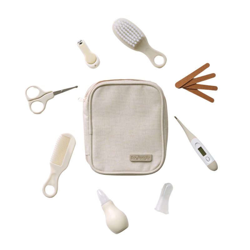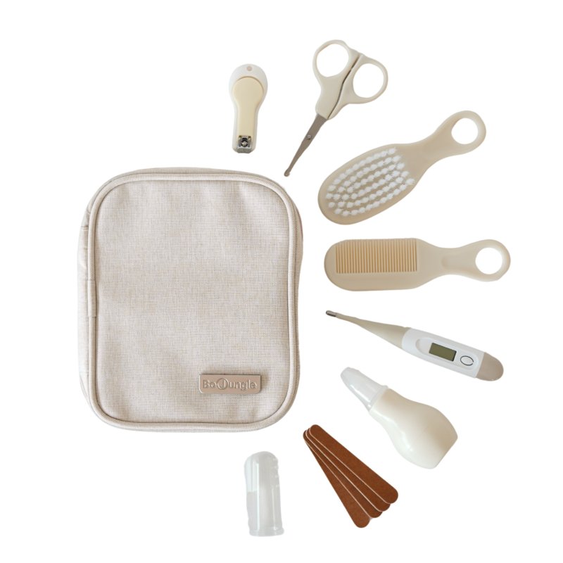 - obsahuje: pilníky, nožnice a klieštiky na nechty, silikónovú kefku na zúbky, hrebeň a kefu na vlasy, digitálny flexibilný teplomer, nosnú odsávačku