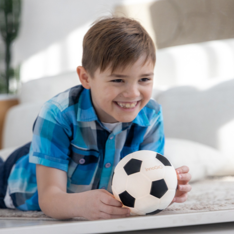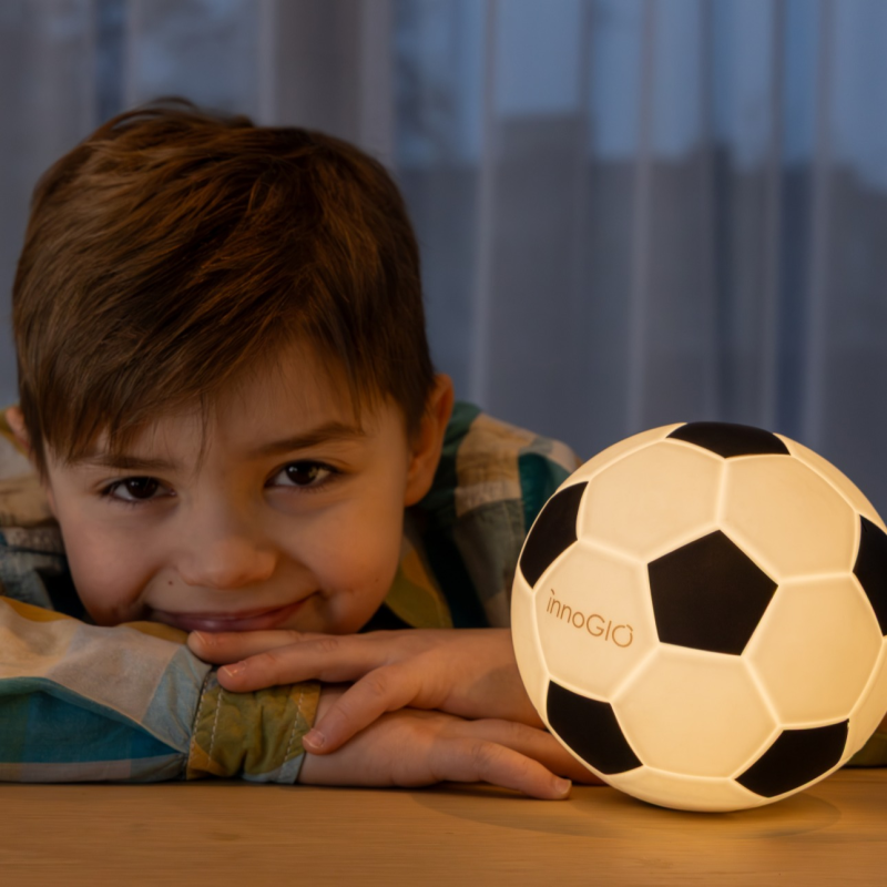 Nočné svetielko v tvare futbalovej lopty očarí nielen najmenších, ale aj ich rodičov. Ponúka 3 intenzity teplého svetla, ktoré je možné zapnúť/vypnúť jednoduchým dotykom. Jeho jemná žiara a nastaviteľná intenzita svetla vytvárajú priateľskú a upokojujúcu atmosféru, ktorá podporuje pokojný spánok. Lampička zostáva na dotyk chladná a je úplne bezpečná. Vďaka praktickému USB-C nabíjaniu si môžete vziať lampičku kamkoľvek potrebujete - do detskej izbičky, na dovolenku alebo napríklad na návštevu k babičke. GIOball kombinuje zábavu, funkčnosť a jedinečný dizajn - ide o perfektný doplnok do izby každého malého (aj veľkého) futbalového fanúšika!