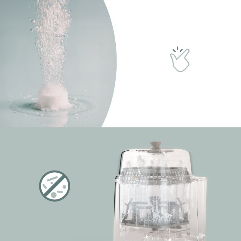Vložte tabletu do zásobníka spotrebiča a spustite umývací program. S Babymoov NutriWash 4v1 používajte iba jednu tabletu na jeden umývací cyklus.