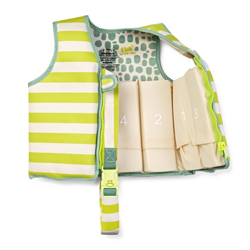 Plavecká vesta je nepostrádateľným pomocníkom pre všetkých rodičov, ktorí chcú svoje deti naučiť plávať bezpečne, efektívne a zároveň s radosťou. Bola navrhnutá s dôrazom na maximálne pohodlie, bezpečnosť a flexibilitu, čo z nej robí ideálnu voľbu pre deti všetkých úrovní plaveckých zručností. Jej jedinečný dizajn zahŕňa prepracovaný systém ôsmich priehradiek, z ktorých každá obsahuje tri vyberateľné časti. Vďaka tomu môžu rodičia ľahko prispôsobiť vestu pokrokom svojho dieťaťa, ako si postupne osvojuje schopnosť samostatného plávania. Tento premyslený koncept pomáha deťom získať väčšiu istotu vo vode bez toho, aby stratili pocit bezpečia, ktorý im vesta poskytuje.